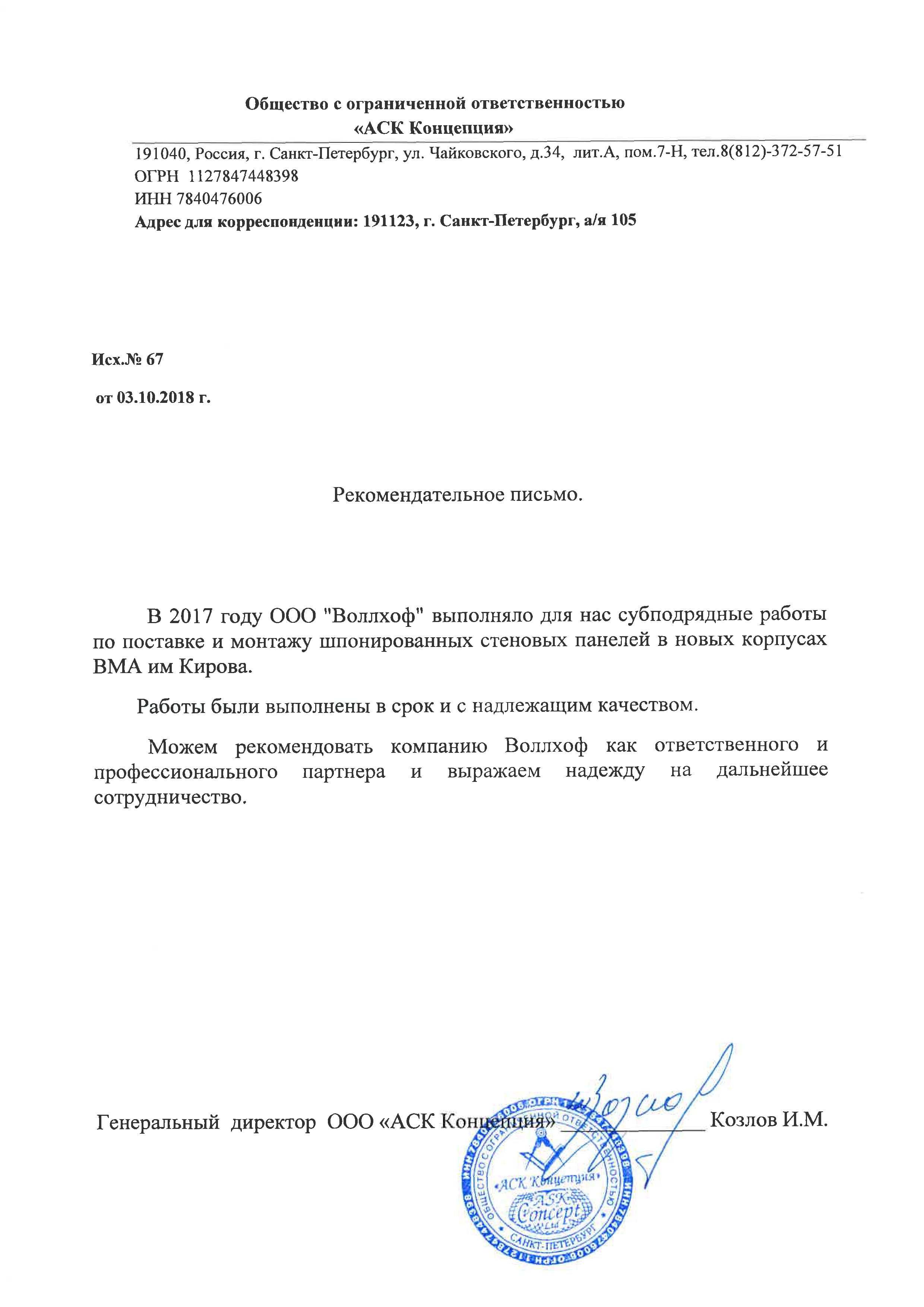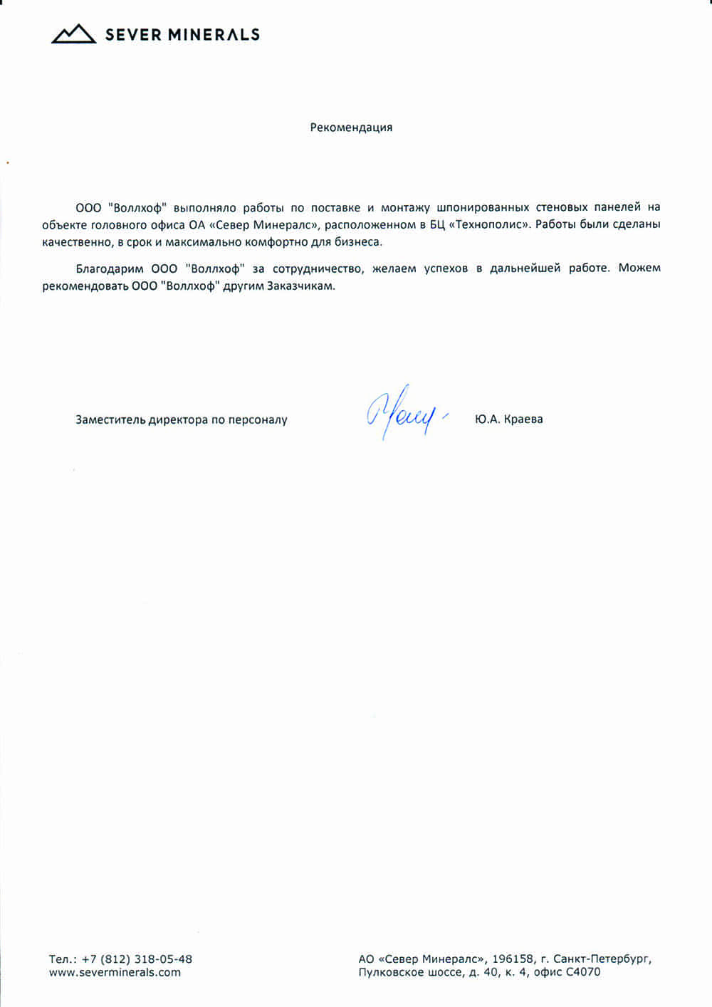 Компания ООО «Воллхоф» зарекомендовала себя как надежный партнер, профессионально исполняющий договорные обязательства.