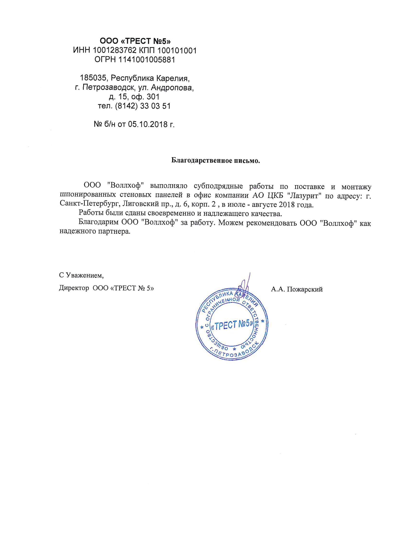 Благодарим ООО «Воллхоф» за сотрудничество, желаем успехов в дальнейшей работе.