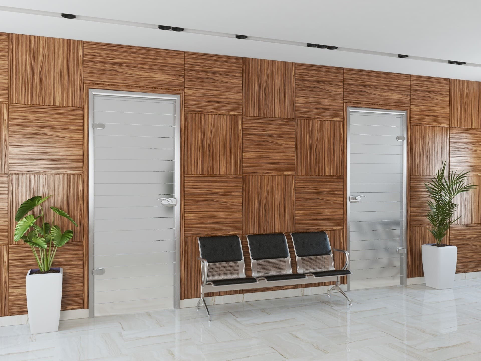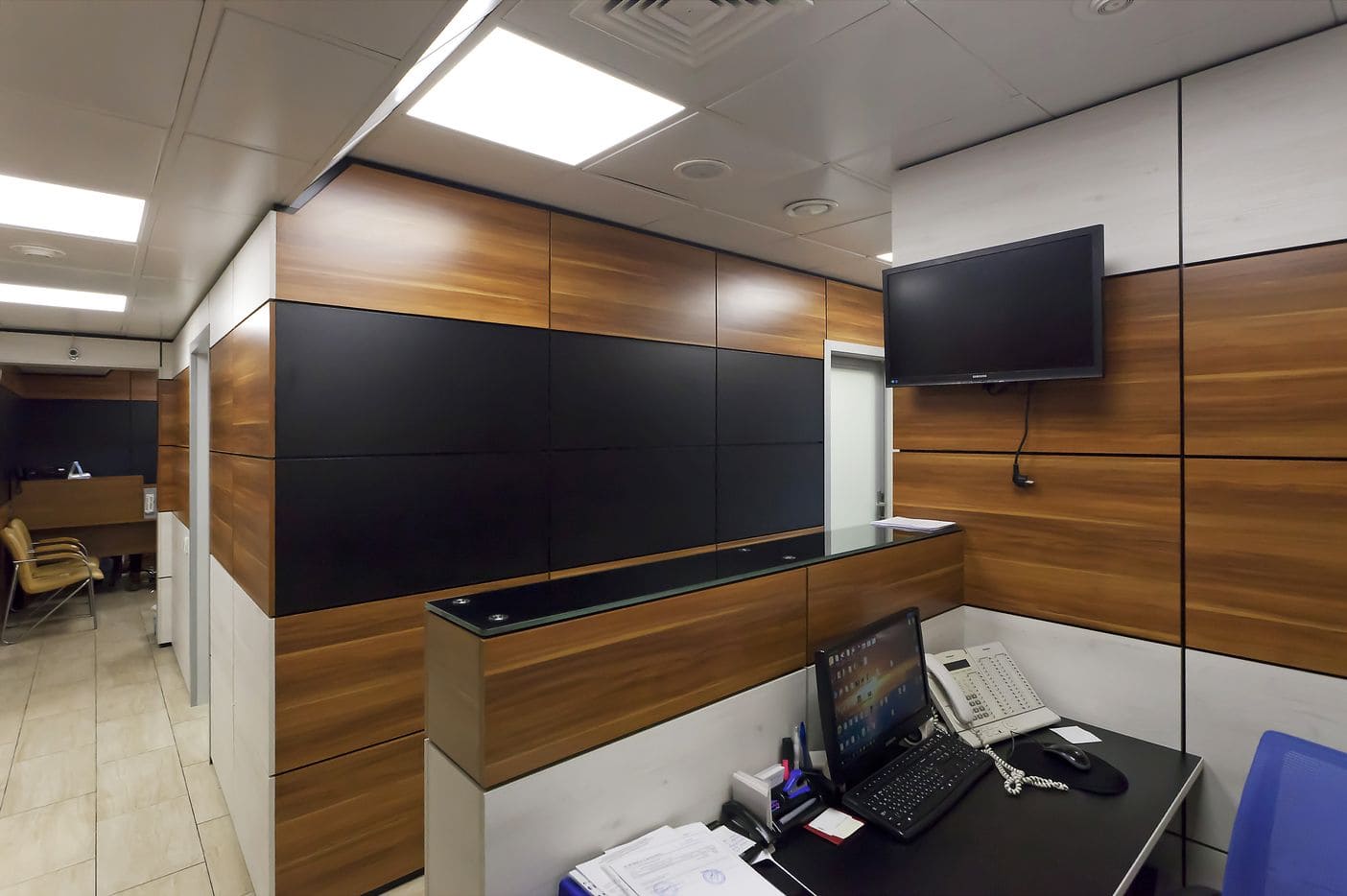 - стены полностью зашиваются панелями (в кабинетах, кафе, отделах ТРЦ и т.д.);