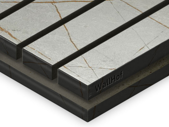ДАННАЯ ПАНЕЛЬ НЕ ЯВЛЯЕТСЯ АКУСТИЧЕСКОЙ (ИМИТАЦИЯ 16/2P). Стеновые панели с HPL пластиком «Мрамор грей светлый» (LM 0435) — купите напрямую у производителя, фабрики Wallhof. Гарантия лучшей цены.