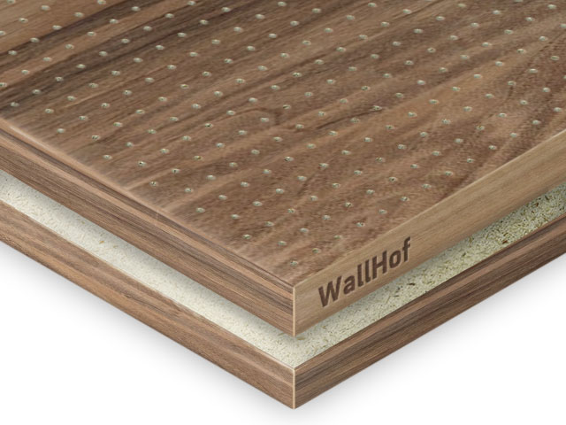 Акустическая панель NANO (лазерная наноперфорация). Потолочные панели с натуральным шпоном «Орех европейский» — купите напрямую у производителя, фабрики Wallhof. Гарантия лучшей цены.