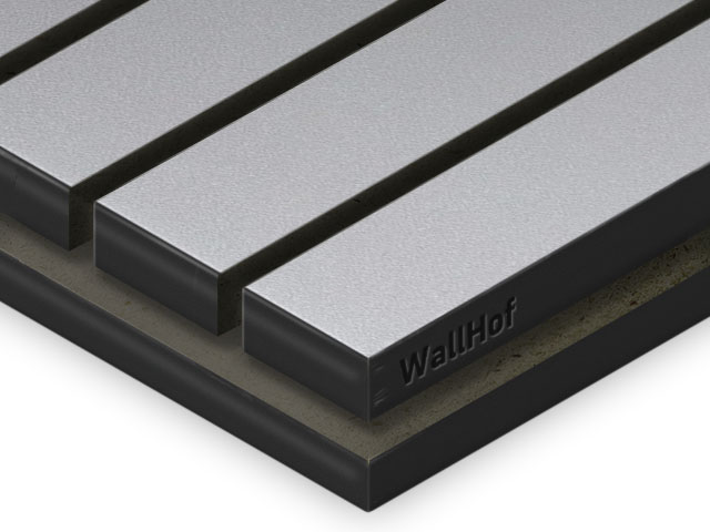 ДАННАЯ ПАНЕЛЬ НЕ ЯВЛЯЕТСЯ АКУСТИЧЕСКОЙ (ИМИТАЦИЯ 16/2P). Потолочные панели с HPL пластиком «Алюминий» (LM 1001) — купите напрямую у производителя, фабрики Wallhof. Гарантия лучшей цены.