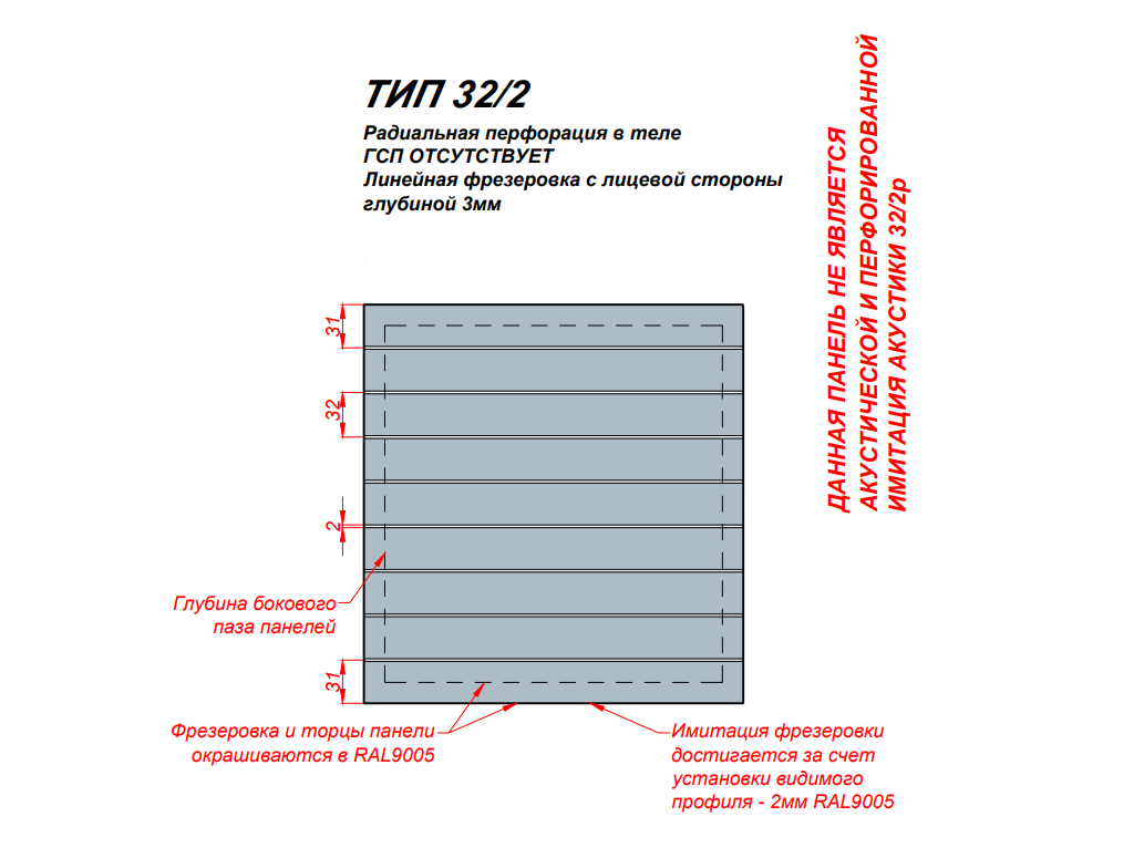 • Тип: 32/2 Линейная перфорация (линейная фрезеровка с лицевой стороны)