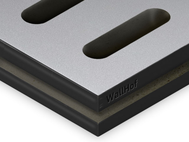 Акустическая панель L8. Потолочные панели с HPL пластиком «Алюминий» (LM 1001) — купите напрямую у производителя, фабрики Wallhof. Гарантия лучшей цены.