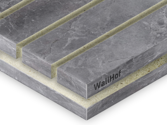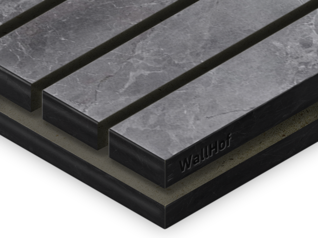 ДАННАЯ ПАНЕЛЬ НЕ ЯВЛЯЕТСЯ АКУСТИЧЕСКОЙ (ИМИТАЦИЯ 16/2P). Стеновые панели с HPL пластиком «Мрамор Марквина серый» (694) — купите напрямую у производителя, фабрики Wallhof. Гарантия лучшей цены.