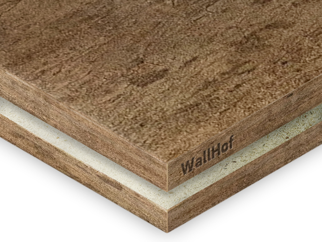 Панели Wallhof Laminat™ производятся на основе СМЛ с покрытием ПВХ пленкой. Такая основа изготавливается путём шлифовки СМЛ, она экологична и безвредна для человека (гигиенические сертификаты в наличии).