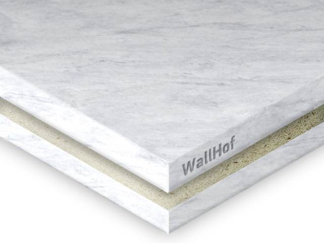 Пластиковые панели Wallhof HPL™ производятся на влагостойкой гипсовой основе. Такая основа изготавливается путём прессования гипса, она экологична и безвредна для человека (гигиенические сертификаты в наличии).
