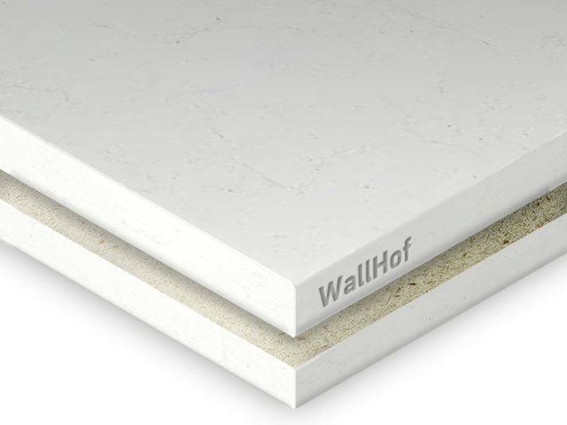 Пластиковые панели Wallhof HPL™ производятся на влагостойкой гипсовой основе. Такая основа изготавливается путём прессования гипса, она экологична и безвредна для человека (гигиенические сертификаты в наличии).