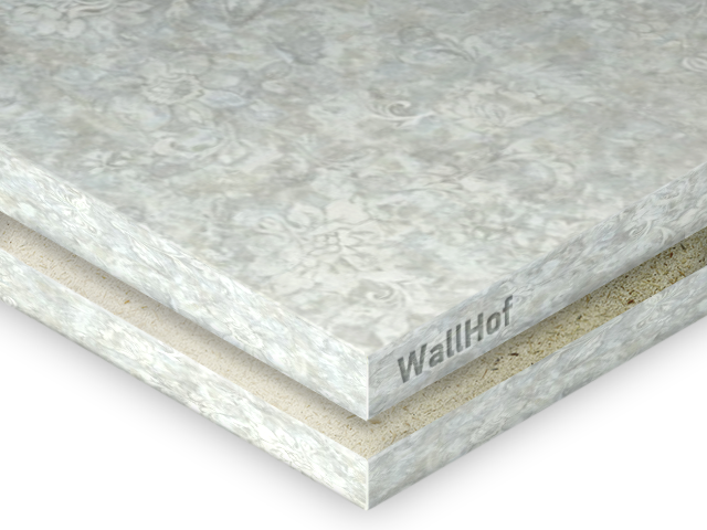 Пластиковые панели Wallhof HPL™ производятся на влагостойкой гипсовой основе. Такая основа изготавливается путём прессования гипса, она экологична и безвредна для человека (гигиенические сертификаты в наличии). HPL панели — это панели, основа которых покрыта слоистым пластиком (High Pressure Laminate — пластик высокого давления, он же компакт-ламинат), который не содержит вредных компонентов и даже при нагревании не выделяет опасные пары и газы.