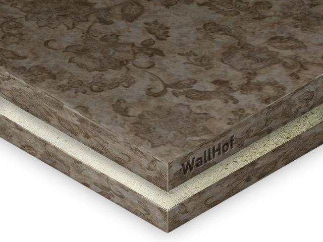 Пластиковые панели Wallhof HPL™ производятся на влагостойкой гипсовой основе. Такая основа изготавливается путём прессования гипса, она экологична и безвредна для человека (гигиенические сертификаты в наличии). HPL панели — это панели, основа которых покрыта слоистым пластиком (High Pressure Laminate — пластик высокого давления, он же компакт-ламинат), который не содержит вредных компонентов и даже при нагревании не выделяет опасные пары и газы.