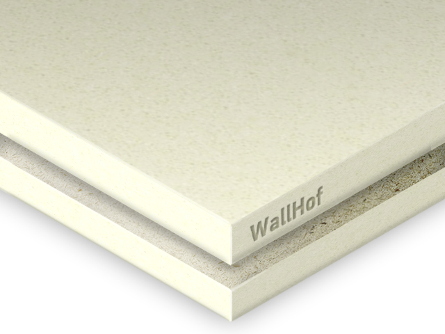 Пластиковые панели Wallhof HPL™ производятся на влагостойкой гипсовой основе. Такая основа изготавливается путём прессования гипса, она экологична и безвредна для человека (гигиенические сертификаты в наличии).