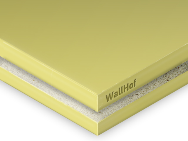 Огнестойкие стеновые панели из HPL пластика «Светло-желтый» (LM 0056) — купите напрямую у производителя, фабрики Wallhof. Гарантия лучшей цены.