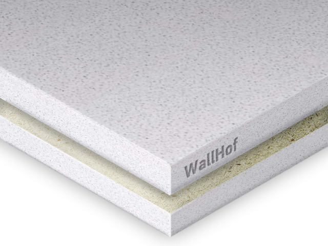 Пластиковые панели Wallhof HPL™ производятся на влагостойкой гипсовой основе. Такая основа изготавливается путём прессования гипса, она экологична и безвредна для человека (гигиенические сертификаты в наличии).