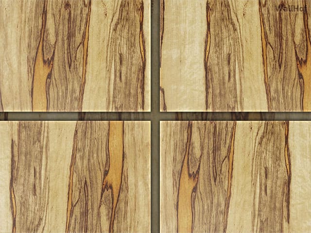 Древесина. Обычно ядро и заболонь светлые, желтовато-коричневые. Иногда на ядре наблюдаются неравномерные неправильной формы сероватые пятна со штрихами, которые могут быть почти черными. Такая древесина внешне очень эффектна и высоко ценится как сырье для производства декоративного шпона. Плотность около 540 кг/м3 при влажности 12 %.