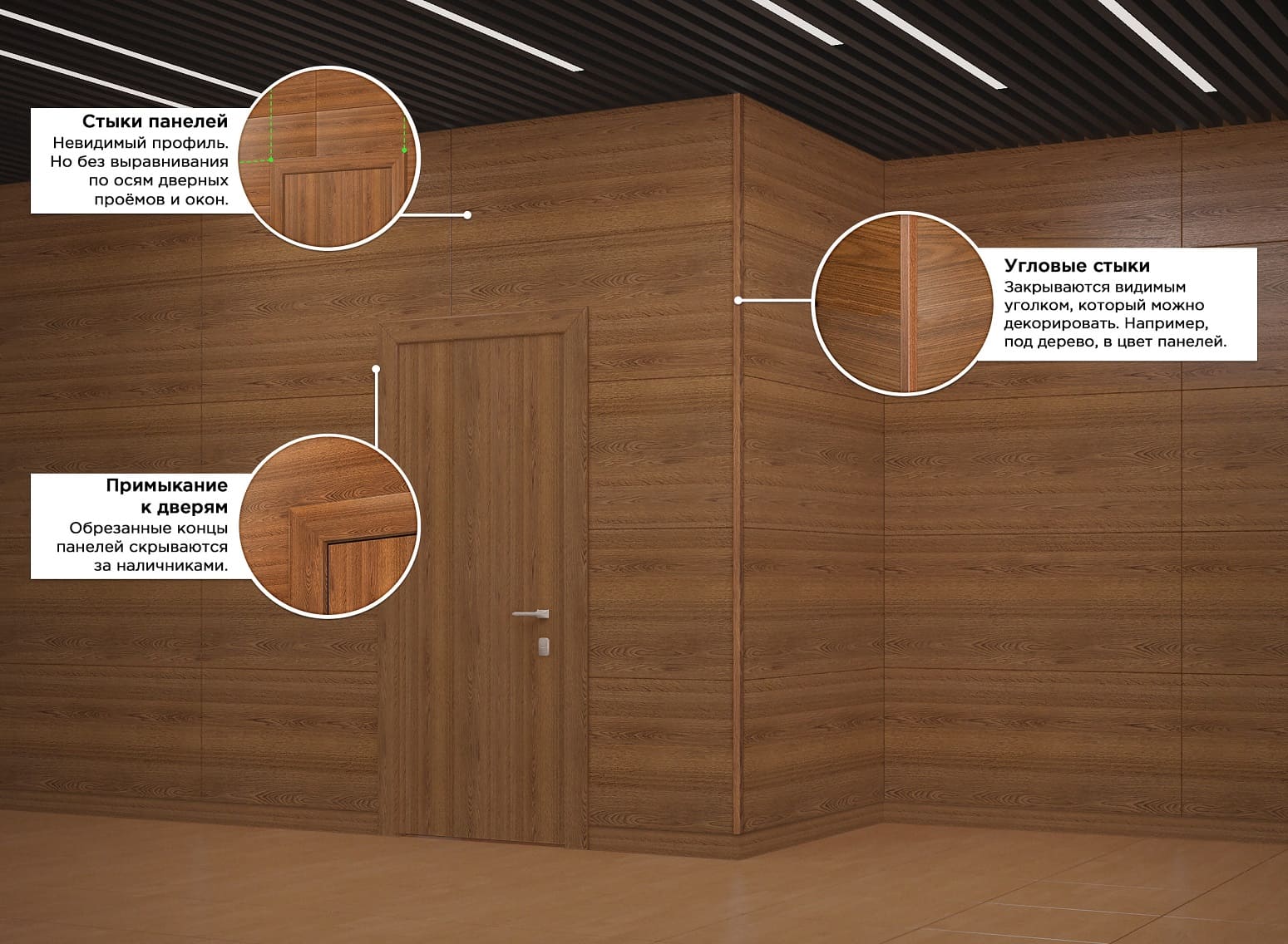 Панели Wallhof для стен и компланарных дверей Панели индивидуальных размеров, согласно проекту