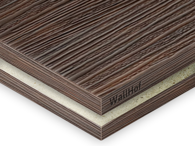 Панели Wallhof Laminat™ производятся на основе СМЛ с покрытием ПВХ пленкой. Такая основа изготавливается путём шлифовки СМЛ, она экологична и безвредна для человека (гигиенические сертификаты в наличии).