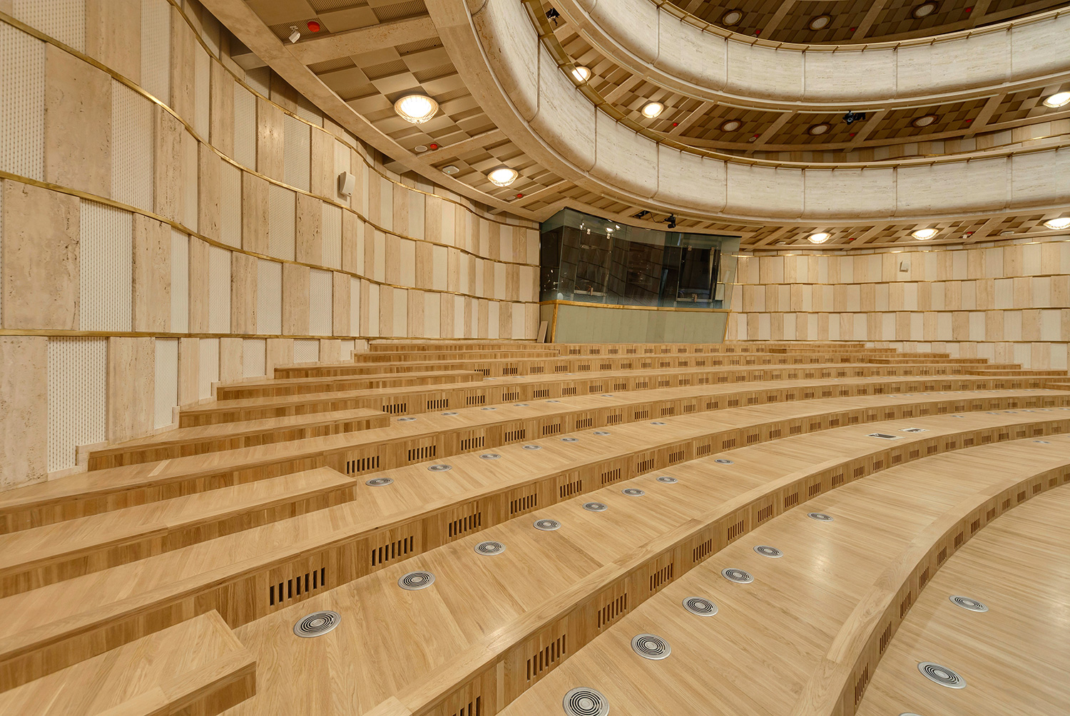 Сложные проекты требуют нестандартных подходов! В концертном зале академии также были применены радиусные панели Wallhof.