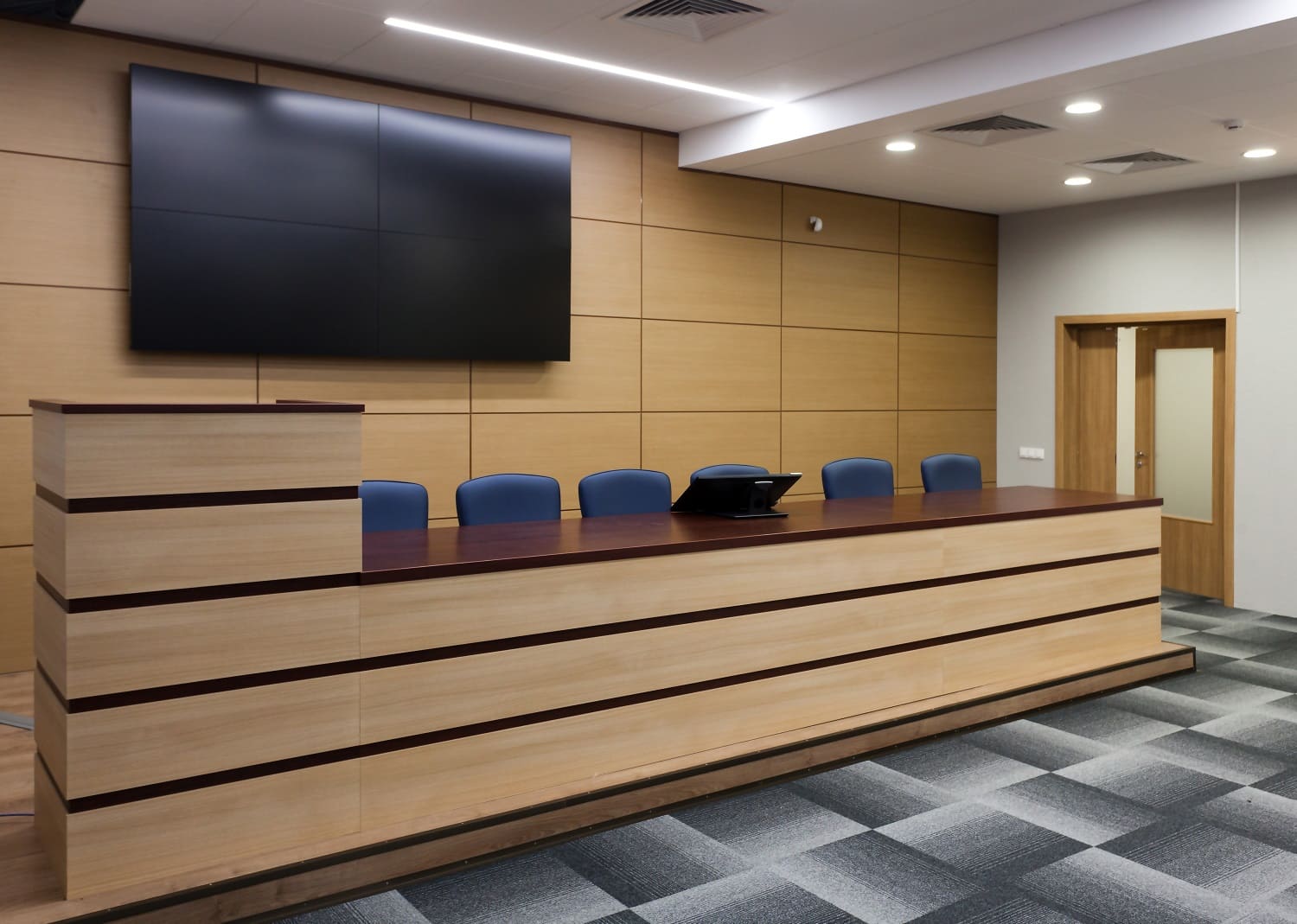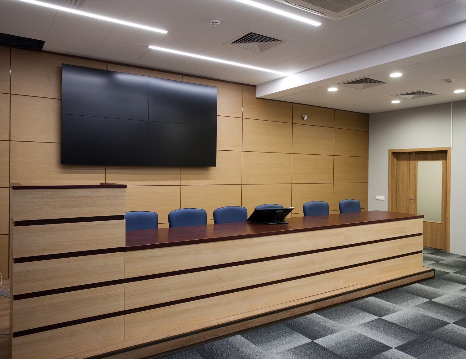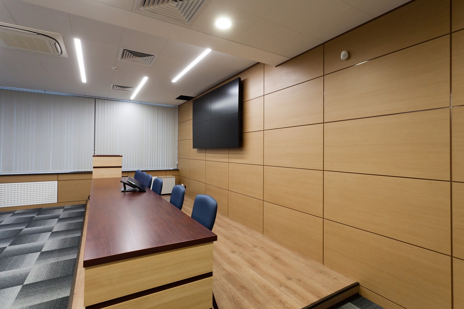 Эффект четкого распространения речи в помещении достигается путём правильной отделки пространства акустическими панелями.
