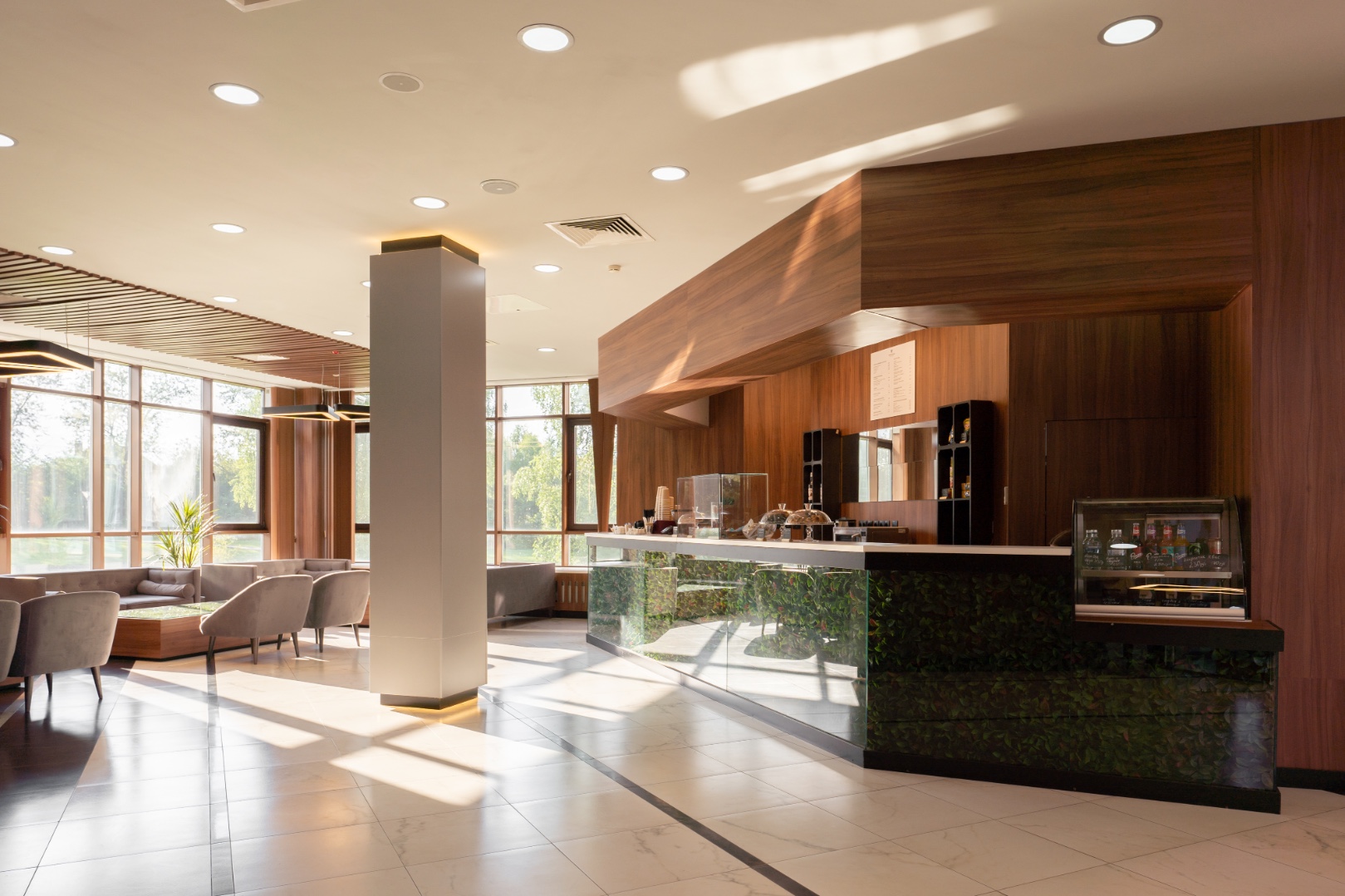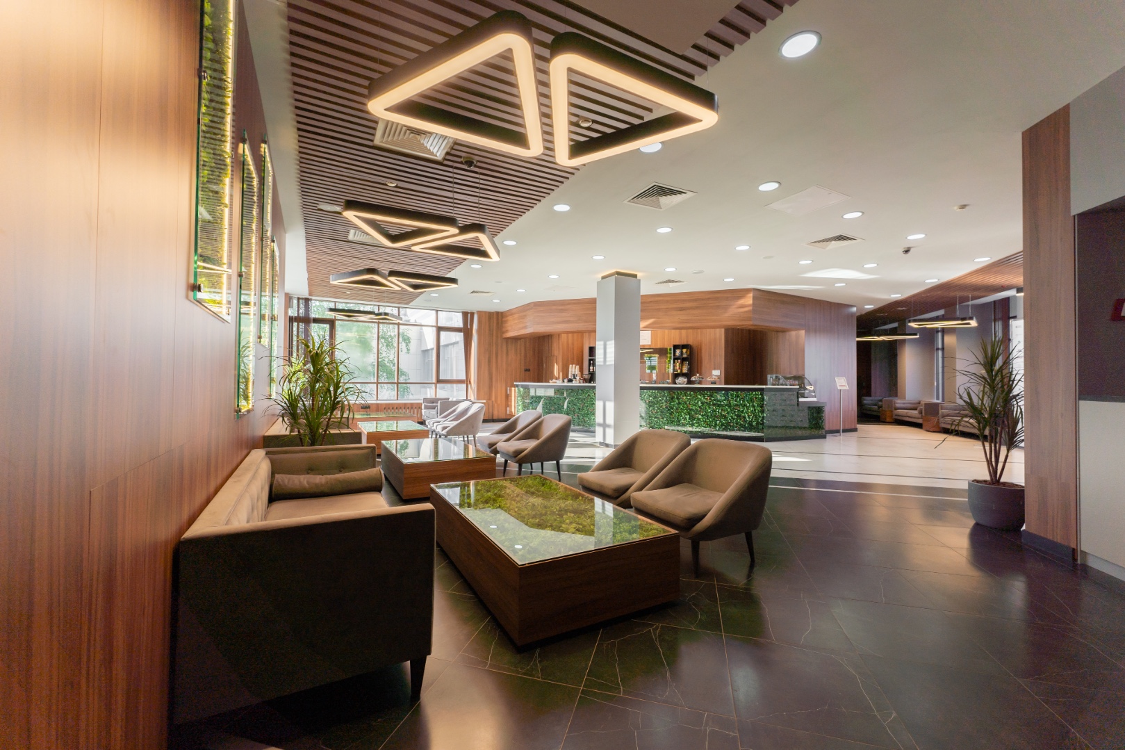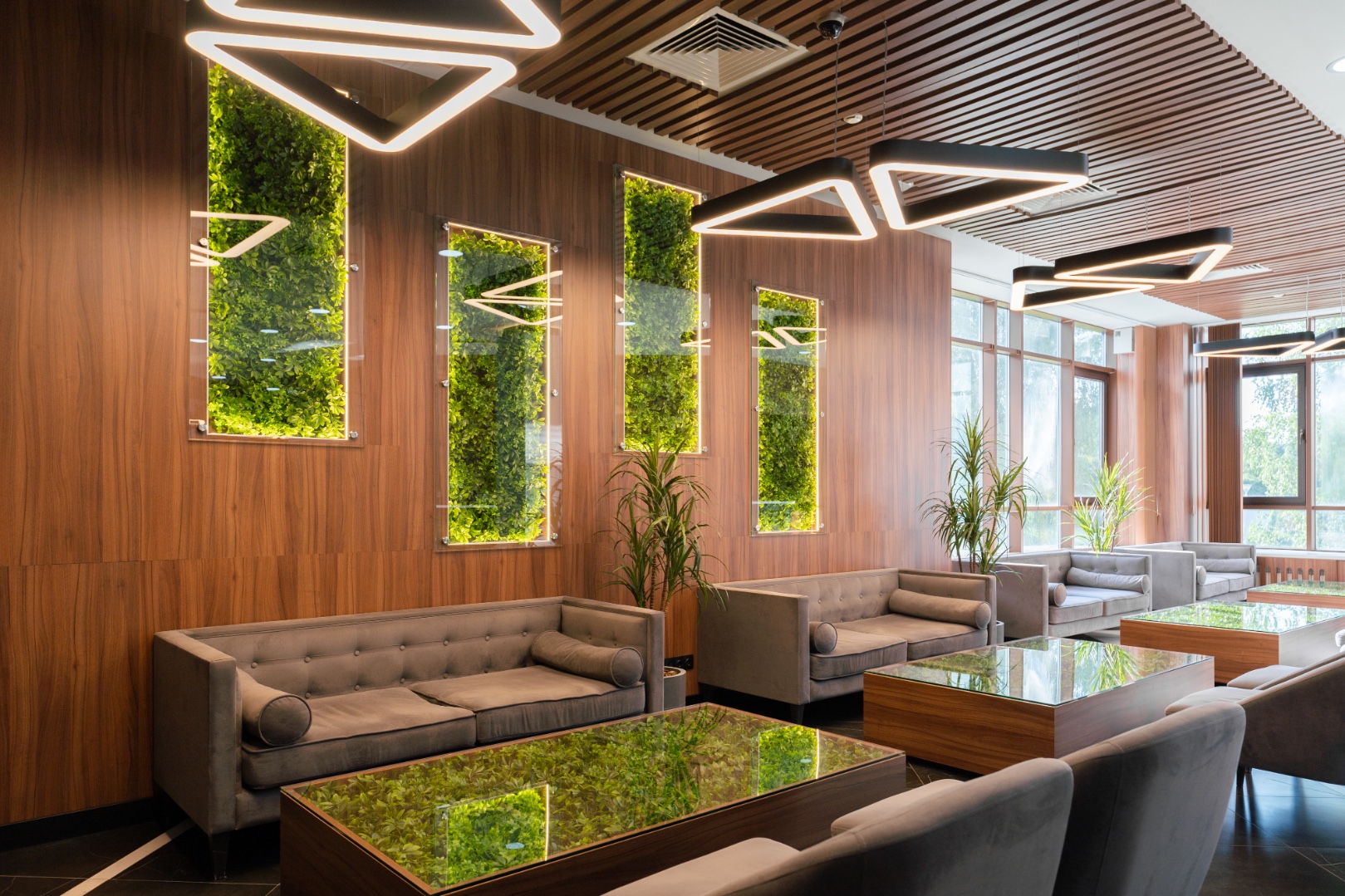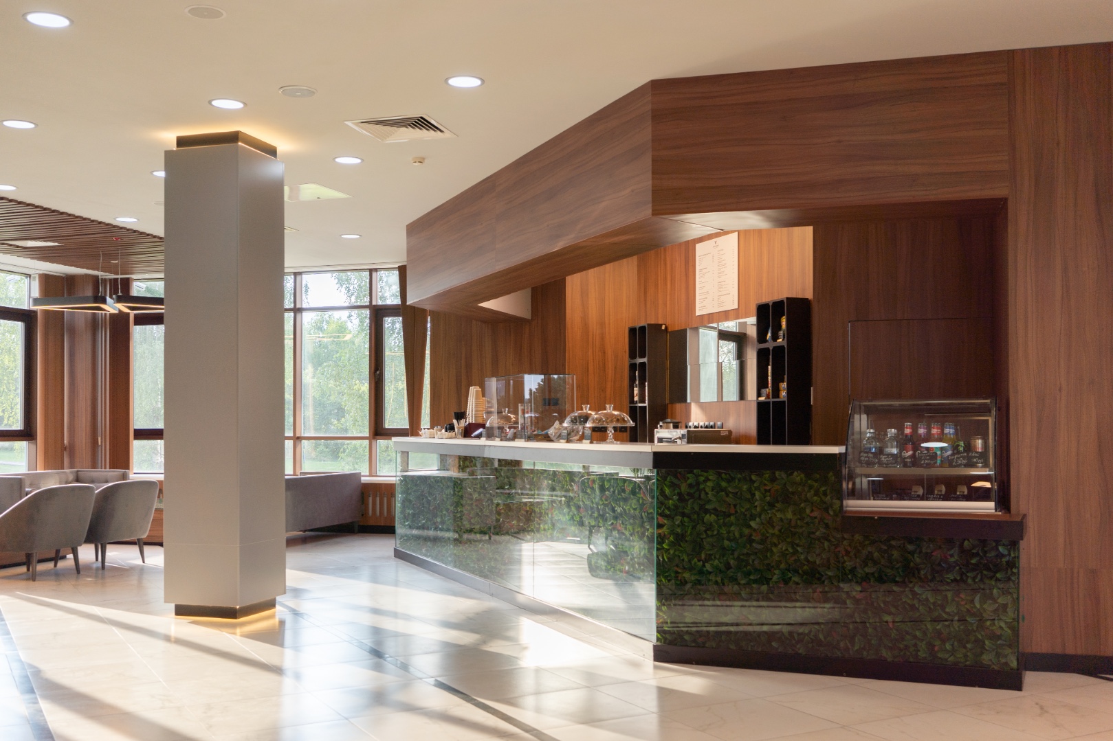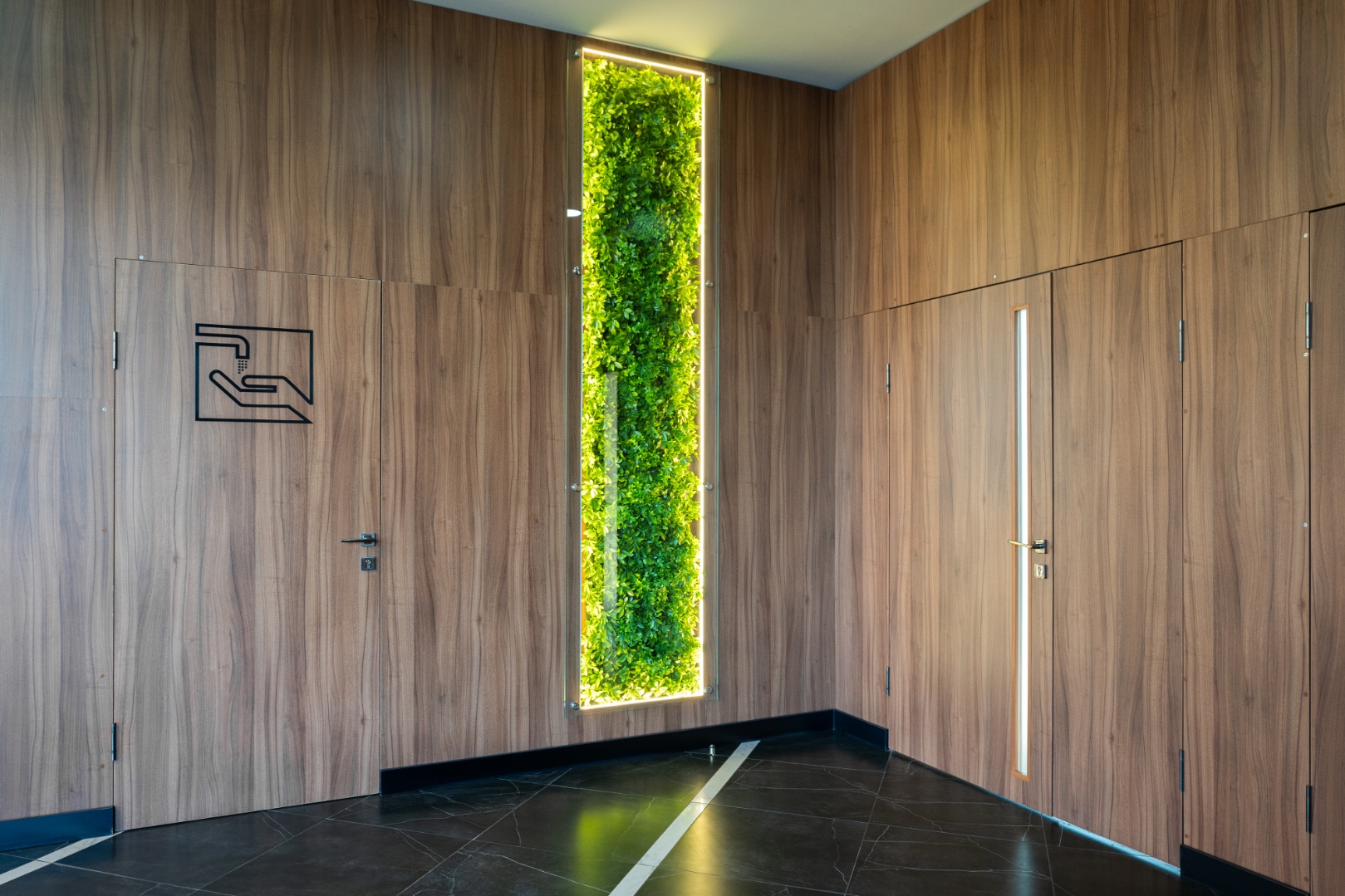 Внутренняя отделка новейшего центра дополнительного образования "Сенеж", выполненная с использованием премиальных шпонированных панелей фабрики Wallhof, подчеркивает статус центра, ориентированного на подготовку управленцев.