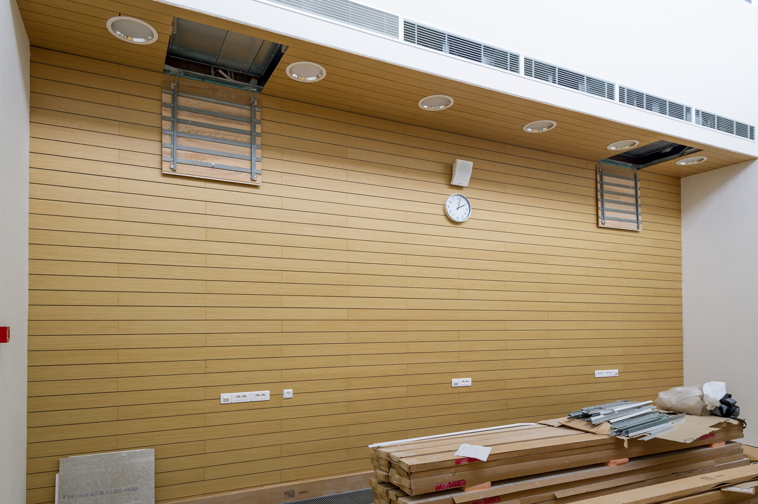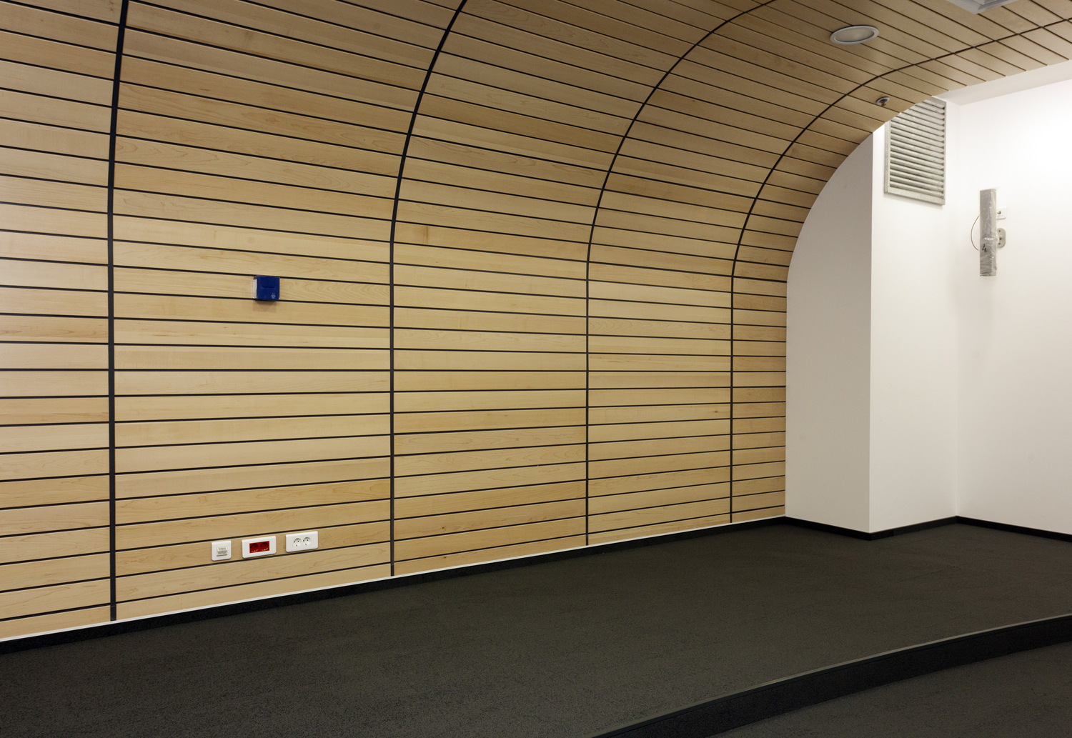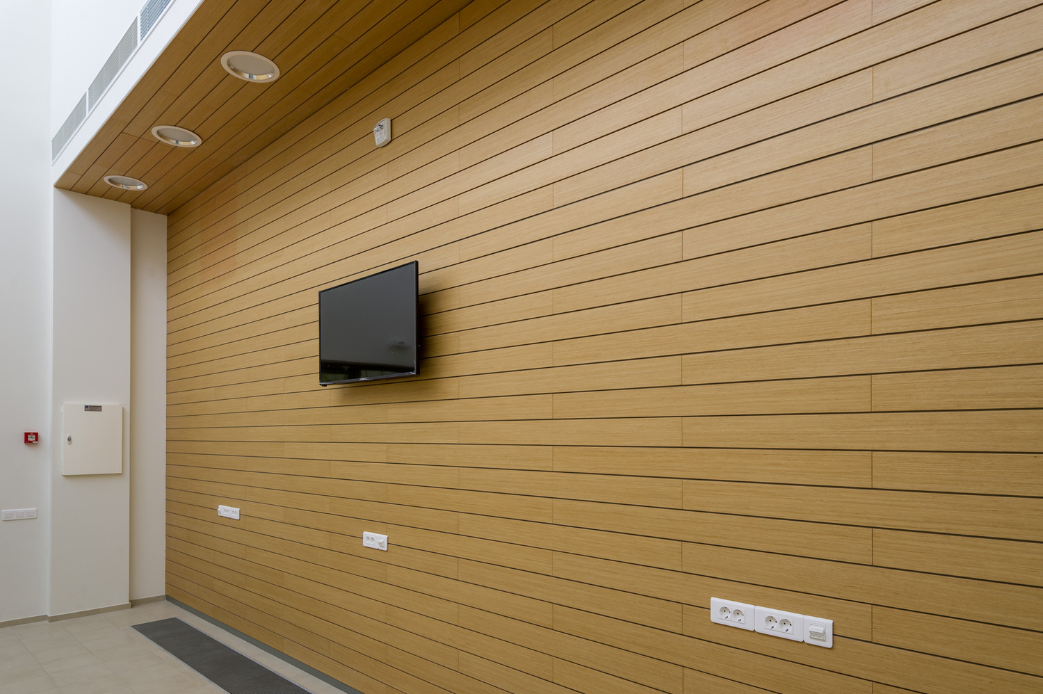 Использование панелей Wallhof Premium Wood, облицованных натуральным древесным шпоном, настраивает на продуктивную работу и придаёт помещению уютную атмосферу.