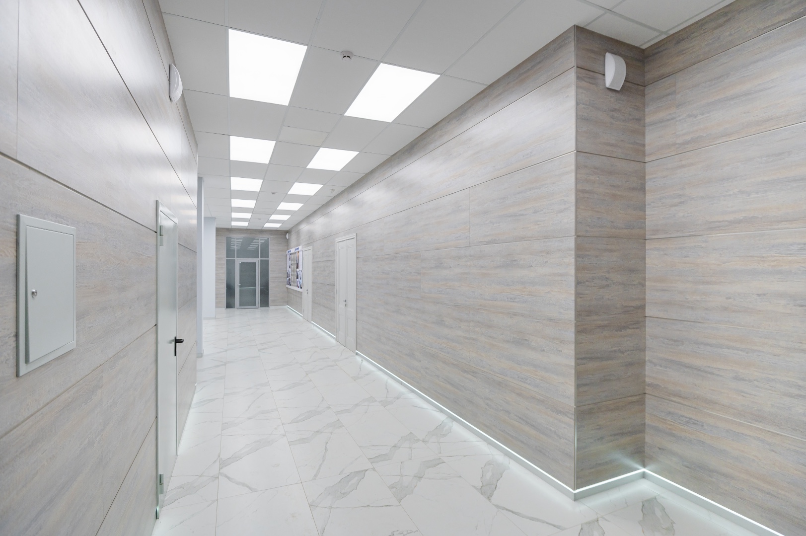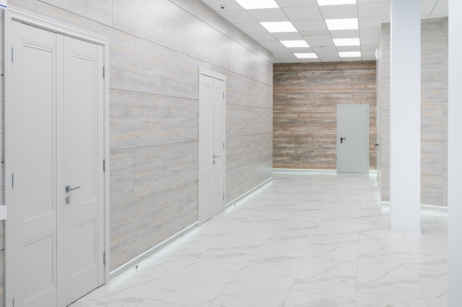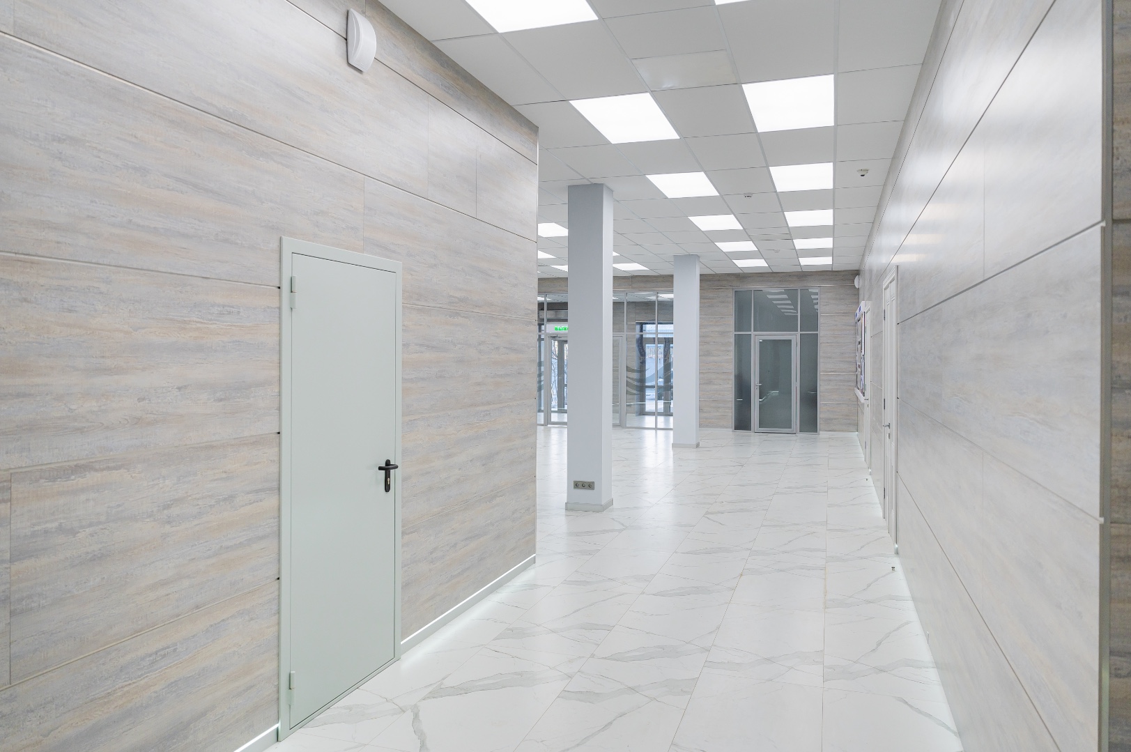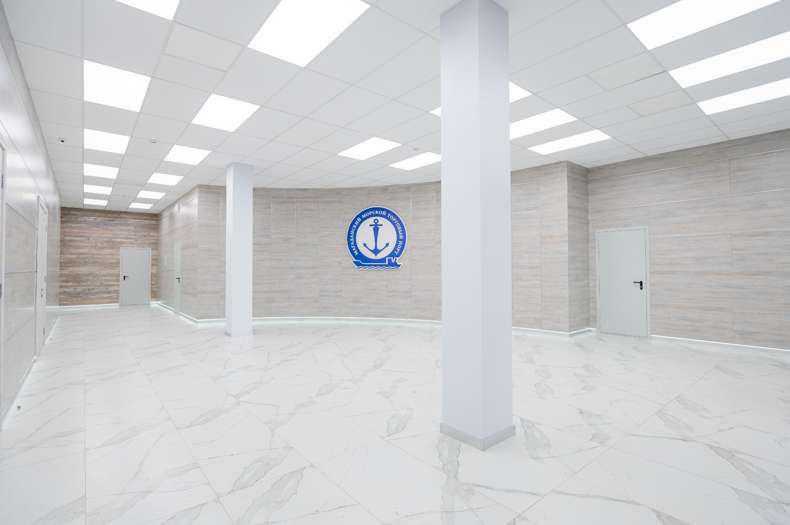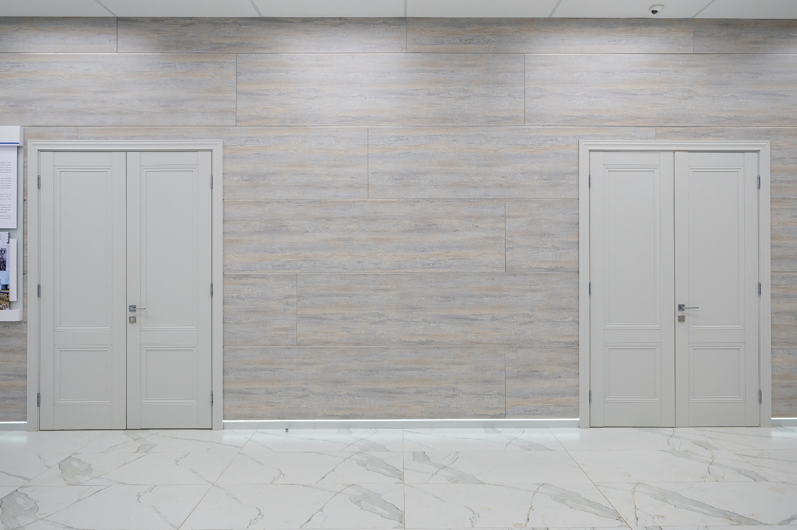 Обновленная входная группа магаданского морского торгового порта полностью выполнена в холодных светлых тонах и выглядит очень целостно благодаря сочетанию светлого керамогранита с рисунком калакатта и панелей Wallhof HPL в декоре Полярный дуб. Естественность декора подчеркивается не только высочайшей детализацией изображения, нанесенного на HPL, но и фактурным тиснением, имитирующем структуру натурального дерева. Также важной особенностью проекта является радиусная стена, осуществить отделку которой удалось благодаря прямым наборным элементам малой длины – такое решение возможно благодаря индивидуальному подходу фабрики Wallhof к реализации каждого объекта, а также наличию сразу ряда технических решений для реализации каждой потребности заказчика. Например, для отделки закругленных элементов производство Wallhof может изготавливать как небольшие прямые изделия, из которых набирается радиус, так и непосредственно целые радиусные панели, точно повторяющие характеристики стены.