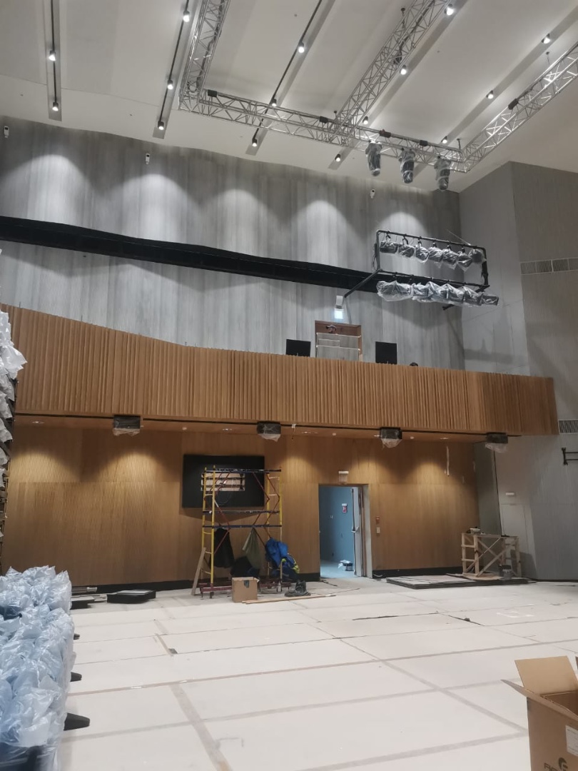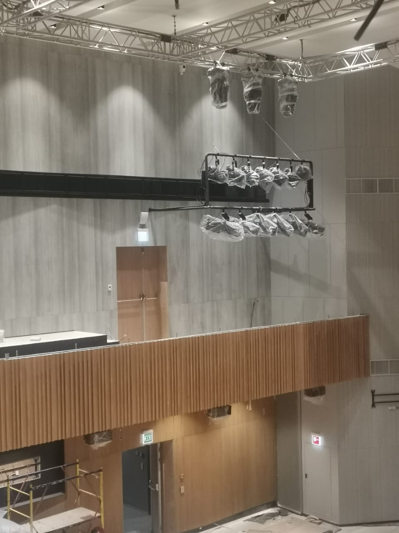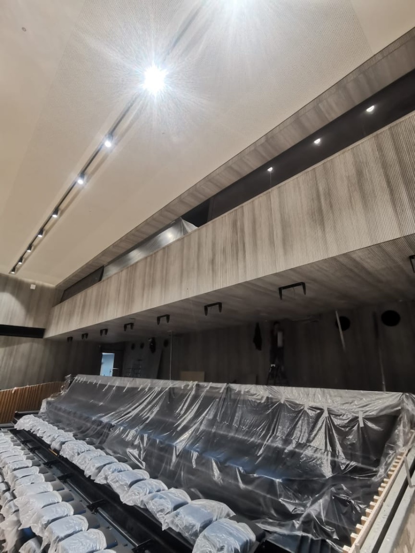 Многофункциональный общественно деловой центр на базе ДК НЛМК. Общий объем смонтированных панелей 750 м2 и 550 м.п декоративных реек.