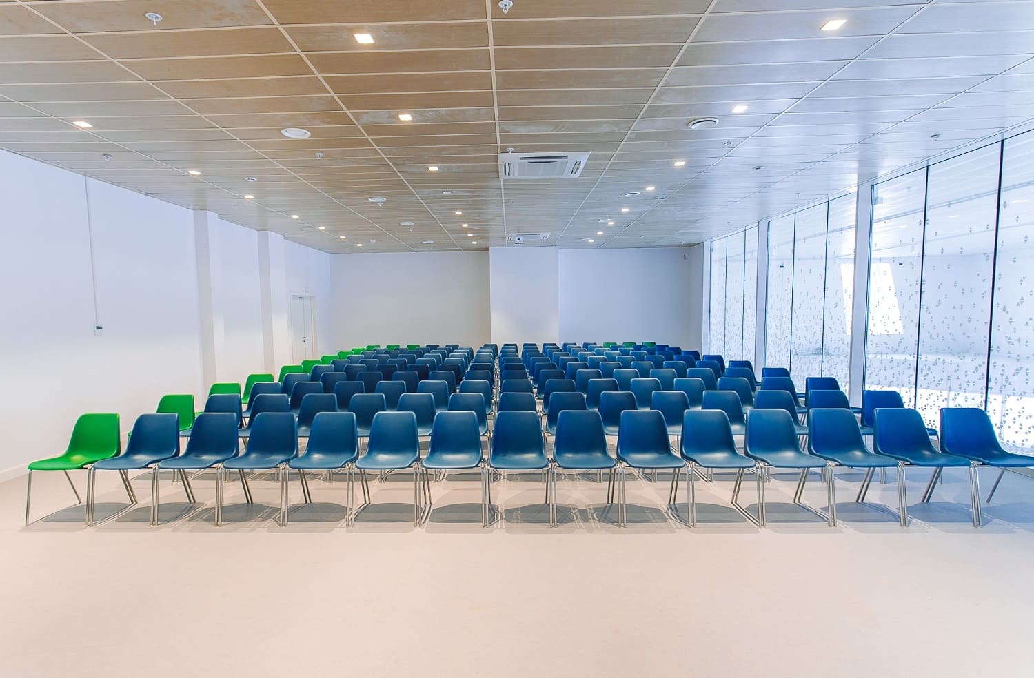 Хорошей звуковой акустики в конференц-зале удалось добиться при помощи потолочных панелей Wallhof Acoustik ™. Перфрация pR20/5.