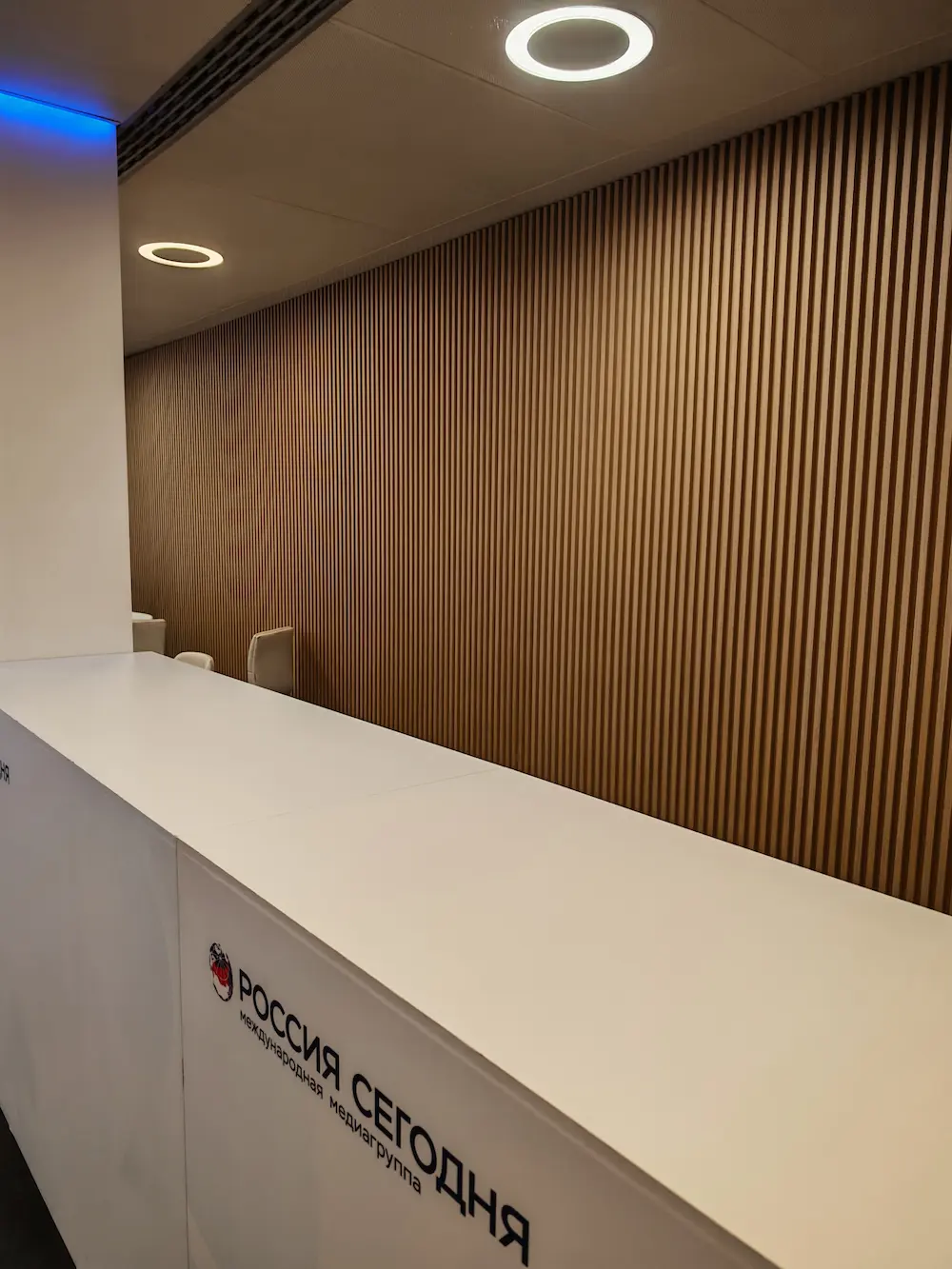 Международный мультимедийный пресс-центр «Россия сегодня» в Москве – самая посещаемая и технологичная площадка в России и СНГ. Требования, предъявляемые к качеству отделки подобных объектов, являются наиболее высокими. Всей команде Wallhof было особенно приятно узнать, что заказчик данного объекта доверяет нам не только изготовление панелей, но и полный комплекс услуг по разработке проекта и оказанию монтажных услуг. По причине высокой загруженности пресс-центра, и не взирая на высокую техническую сложность объекта, все работы были выполнены в кратчайшие сроки и с проявлением максимальной гибкости при производстве работ. Мы гордимся, что площадка, принимающая более 2500 мероприятий самого высокого уровня в год, доверяет продукции и услугам Wallhof!