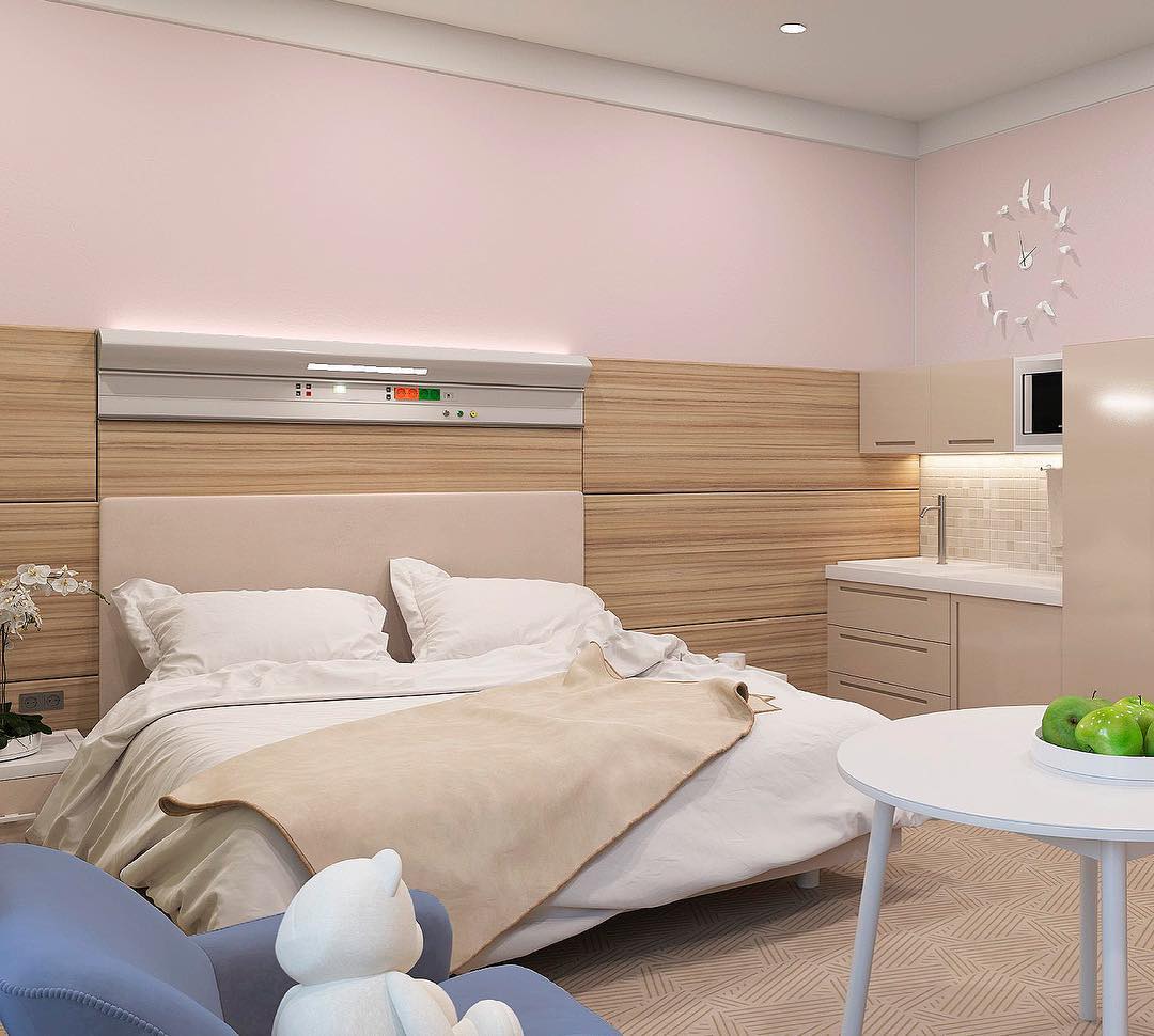 Взгляните, как уютно смотрятся панели Wallhof HPL в родовом зале, палатах и коридорах клиники. Панели были применены также для облицовки колонн. Толщина панелей 12 мм., в проекте более 10 нестандартных типоразмеров. Медицинские панели Wallhof: обеспечивают гладкую поверхность точно имитируя при этом рисунок дерева, обладают огнестойкими и антистатическими свойствами, легкодоступны для влажной уборки, устойчивы к обработке моющими и дезинфицирующими составами, устойчивы к механическому воздействию.