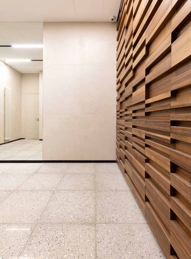 Изготовление необычных панно, состоящих из отдельных разноуровневых элементов, для отделки всех входных групп жилого комплекса бизнес-класса Малоохтинский 68. Оригинальные реечные панели, каждая из которых индивидуальна, стали новым вызовом для компании Wallhof. Необходимость разработки самостоятельного проекта по каждой входной группе, которых в общей сложности 14, потребовало максимальной включенности в проект конструкторского отдела Wallhof. Но итоговый результат оправдал приложенные усилия и принес удовлетворенность готовым решением как дизайнерам, работавшим над общей концепцией проекта, так и жителям дома, каждый день лицезрящим высококлассные изделия, ставшие результатом труда слаженной команды профессионалов.