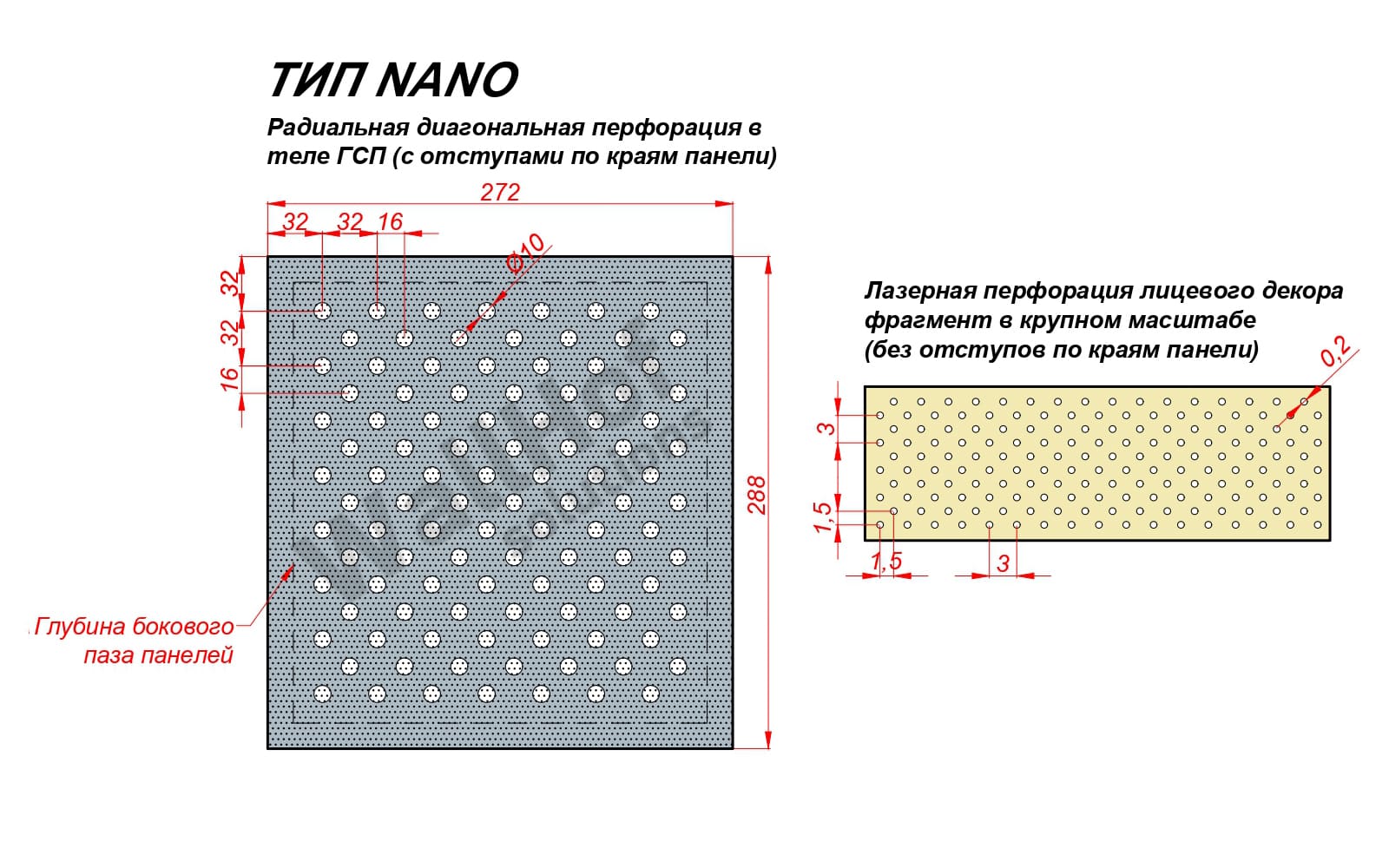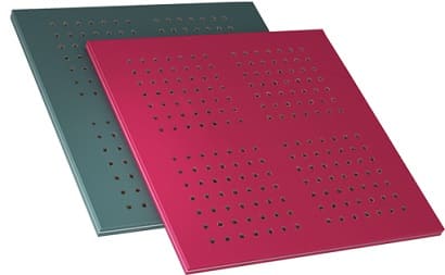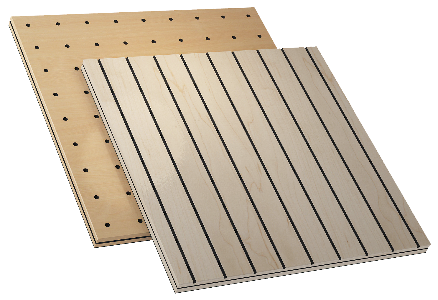 Перфорация позволяет панелям поглощать звуковые колебания на разных частотах с разными коэффициентами звукопоглощения. Коэффициент звукопоглощения варьируется от расстояния между акустической панелью и стеной, а также от наличия слоя минеральной ваты между стеной и акустической панелью. Всё зависит от требований по акустике.