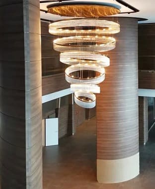 Wallhof HPL™ — это не обязательно “гладкий прямоугольник”. Панели могут быть радиусными (например, для облицовки колонн), реечными, иметь ярко выраженную фактуру (что может придавать 3d эффект). Конструкция облицовки может иметь скругляющие элементы, люки скрытого монтажа, дополнительные элементы освещения.